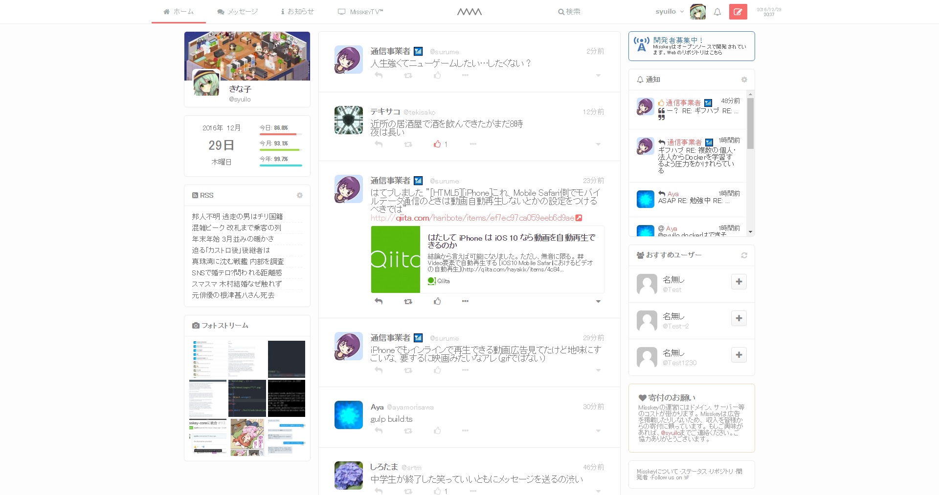 Misskey is a completely open source, ultimately sophisticated new type of mini-blog based SNS.